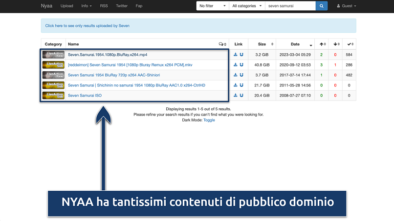 Nota: evita di usare NYAA per scaricare contenuti piratati o illegali.