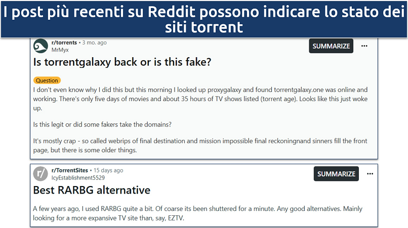 - TorrentGalaxy. Fino a poco tempo fa, TorrentGalaxy era uno dei siti più utilizzati. Tuttavia, ha iniziato a riscontrare significativi tempi di inattività e altri problemi dopo essere stato venduto a un acquirente sconosciuto nel 2024. La vicenda è culminata in due settimane di inattività per l'URL principale a marzo 2025 (torrentgalaxy.to)12, e da allora è disponibile solo a intermittenza.