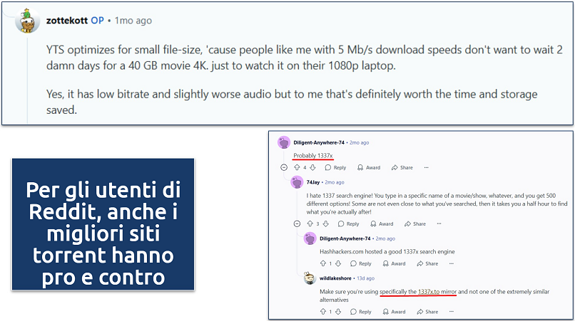 Recentemente, YTS, 1337x e BT4G sono tra i siti più consigliati su Reddit.. La popolarità dei siti torrent e le opinioni della community possono cambiare rapidamente, quindi è sempre consigliabile leggere i commenti e i post più recenti.