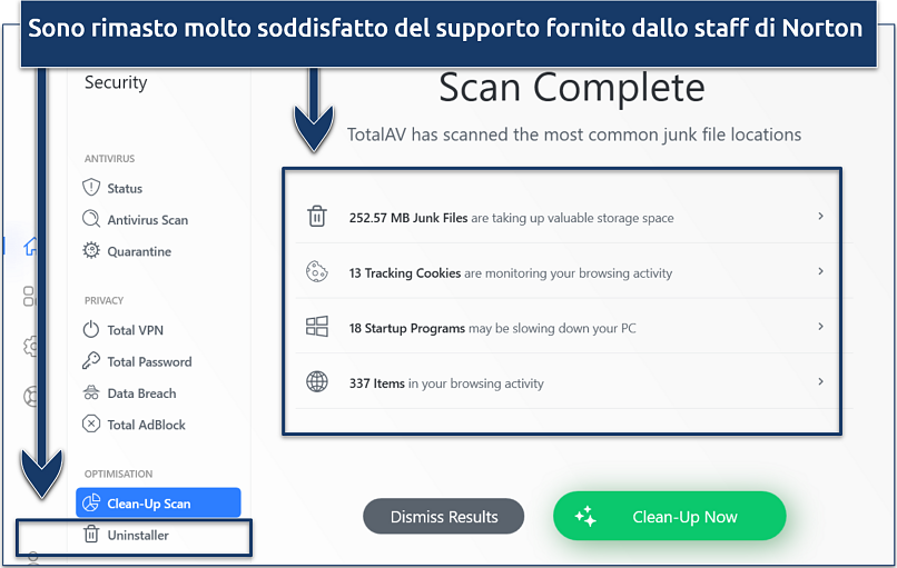- Facilità di utilizzo. TotalAV offre app intuitive per tutti i principali sistemi operativi, oltre al un supporto disponibile 24 ore su 24, 7 giorni su 7 per qualsiasi tipologia di assistenza di cui potresti aver bisogno.