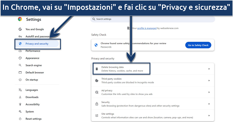 2. Cancella i cookie e la cache