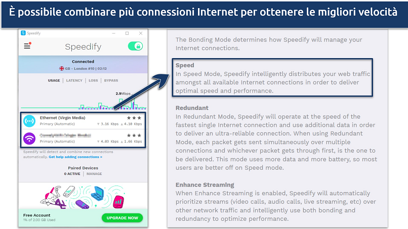 6. Speedify — 100% gratuita con modalità Bonding per aumentare la velocità di connessione