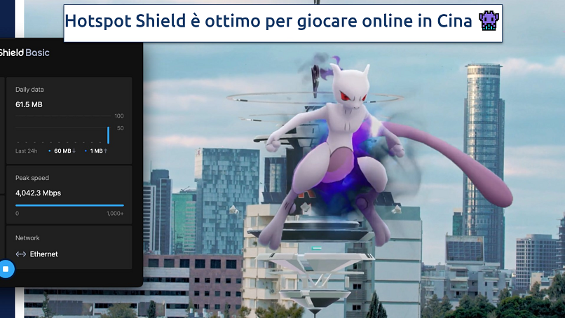 Hydra, il protocollo brevettato di Hotspot Shield, consente alla VPN di eludere le restrizioni con facilità, diversamente dal tradizionale OpenVPN, che è lento e debole rispetto ai firewall. Sono rimasta colpita anche dal ping basso mentre utilizzavo questo protocollo, che si rivela quindi ottimo anche per giocare online: un'ottima notizia nella terra di Pokémon GO e di altri giochi sensazionali.